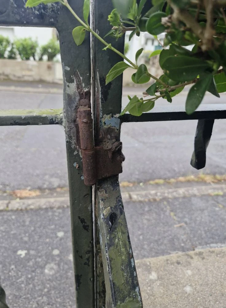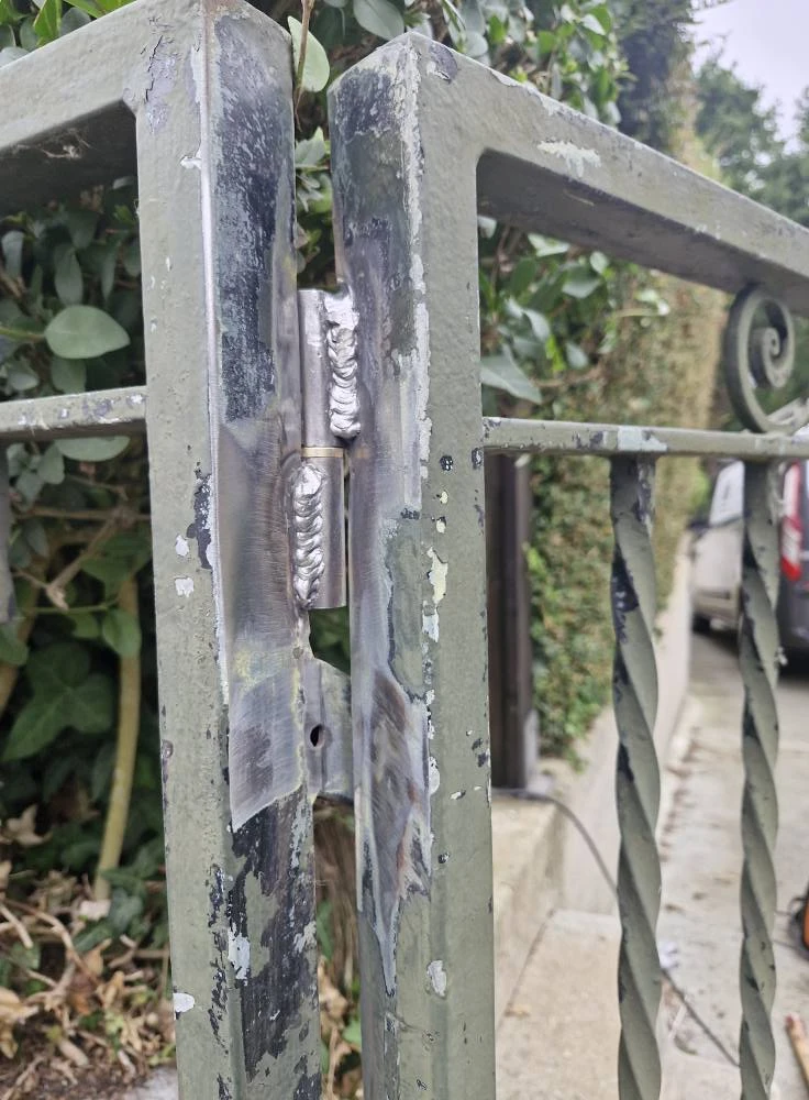 Réparation et changement de 2 paumelles sur un portail à Lanester.