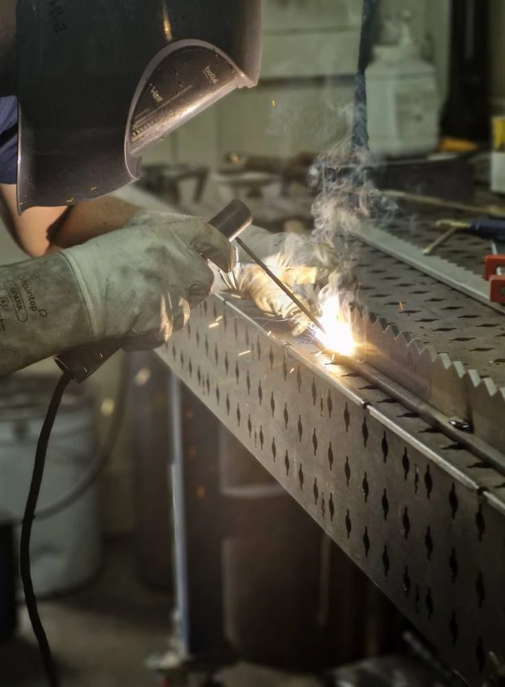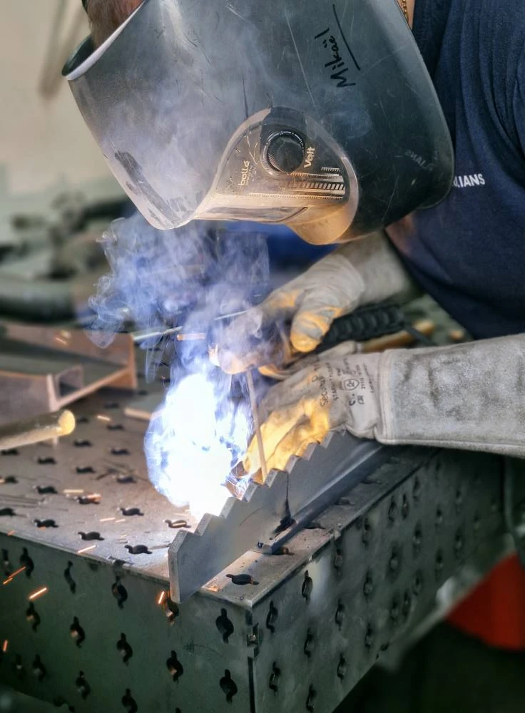 Renforcement avec un plat sur 8 supports pour une entreprise spécialisée en microbillage et thermolaquage sur Lorient.