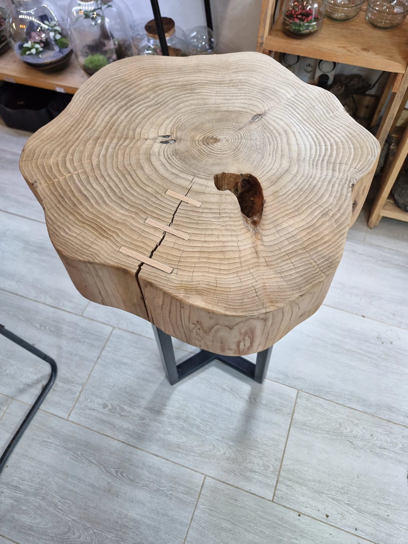 Table en acier et thuya massif